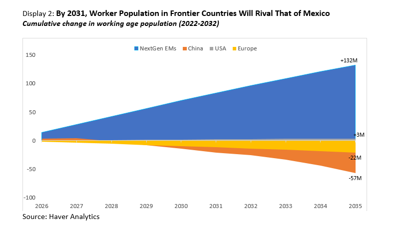 China faces the same challenge, with an expected loss of nearly 60 million workers over the coming decade. However, over the same period, Vietnam, Indonesia, Philippines, Pakistan, Bangladesh, Egypt and Nigeria—home to a combined population of 1.3 billion—are set to add 132 million people collectively to their workforce, effectively creating another Mexico.